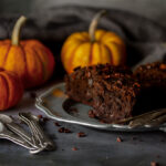 Pour the dough into the baking dish and garnish with cocoa nibs.