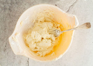 In a medium-sized bowl, cream vegan butter and sifted confectioner's sugar with a fork until they have softened and is fully combined.
