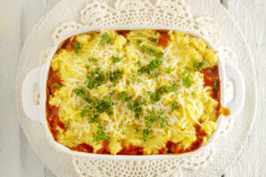 Bake for 25 minutes or until the cheese has melted. Add chopped parsley and serve.