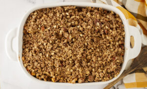 Add the remaining apple filling ingredients. Toss to combine. Empty the contents into a greased 9x13 baking dish.