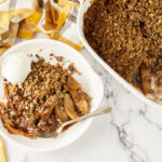 Rinse and wipe out your mixing bowl and mix in your crust ingredients. Pour evenly onto your apples.