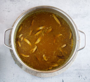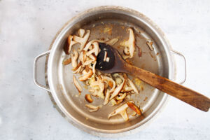 Heat a large soup pot over medium heat. Add grapeseed oil or coconut oil, garlic and ginger. Sauté 1-2 minutes or until it starts to brown then add the shiitake mushrooms and continue sautéing for another 5 minutes or until golden brown.